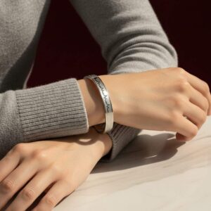 - Fit: Designed like a cuff with an adjustable chain extension for a perfect fit.